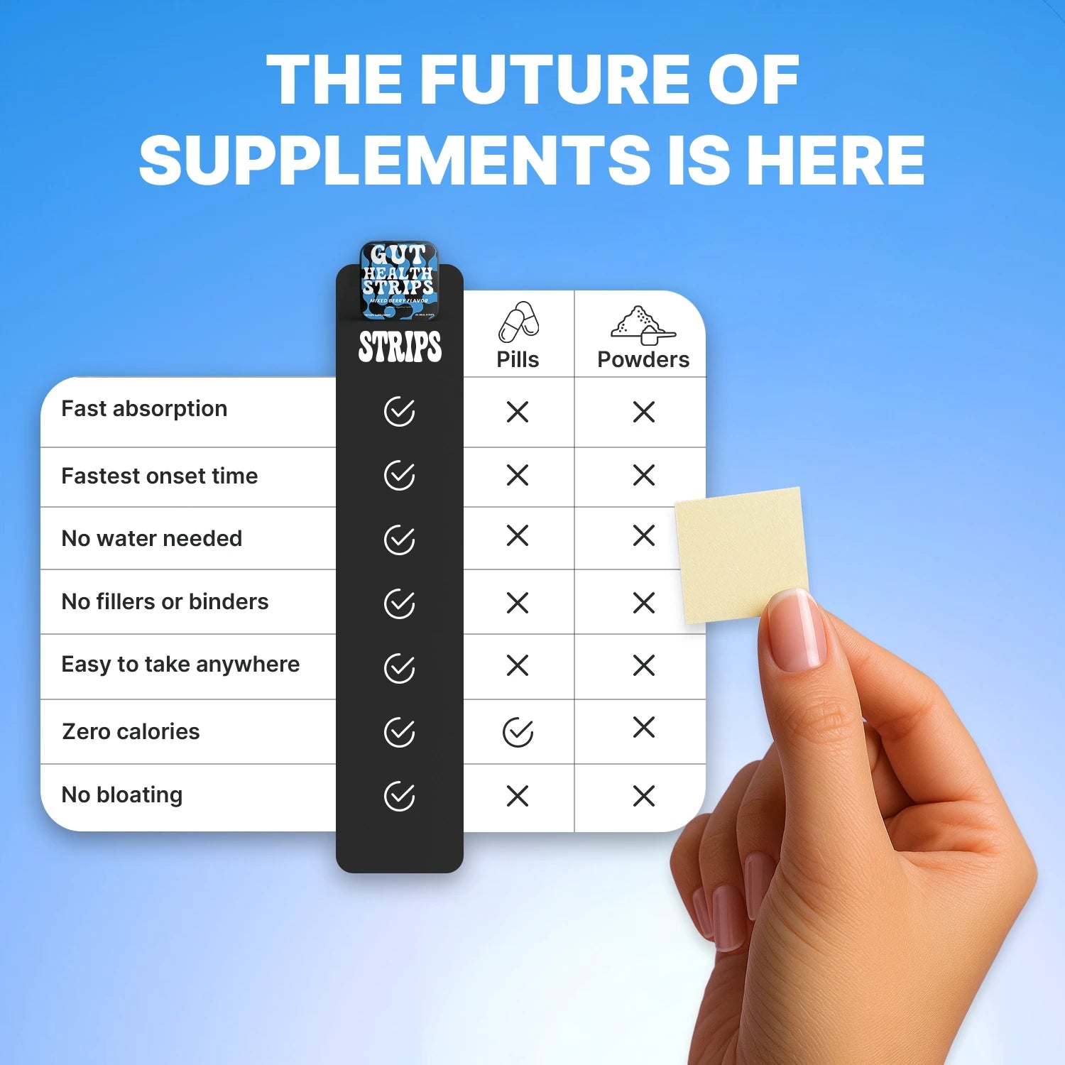 These clinically studied nutrients are concentrated into our 3-Layer Paper Matrix™ — an ultra-thin strip engineered to dissolve instantly for optimal absorption. No fillers, no binders, no unnecessary additives. Just one strip a day to support digestion, gut comfort, and daily wellness as part of a balanced lifestyle.*