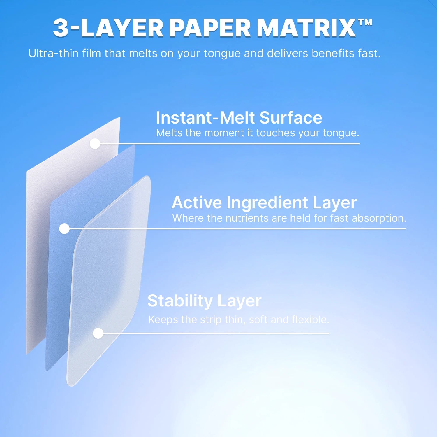 Fast absorption: Nutrients begin absorbing through the mouth as the strip dissolves.