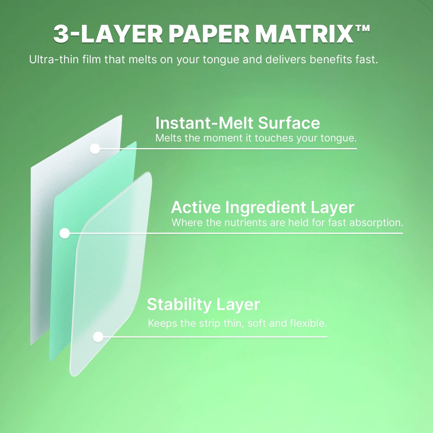Fast absorption: Nutrients begin absorbing through the mouth as the strip dissolves.