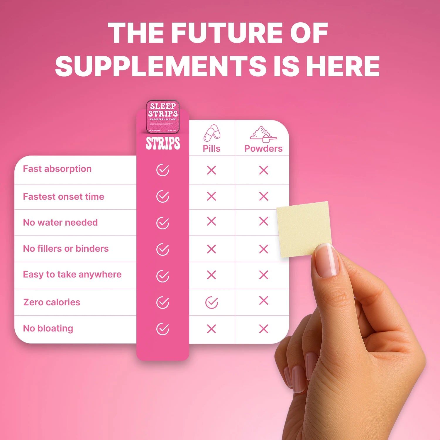 Oral strips are ultra-thin, flavored supplements that melt on your tongue in seconds.