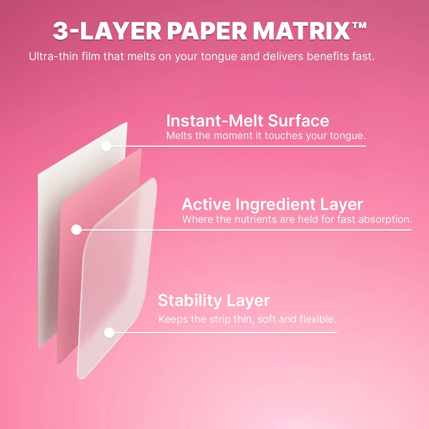Fast absorption: Nutrients begin absorbing through the mouth as the strip dissolves.